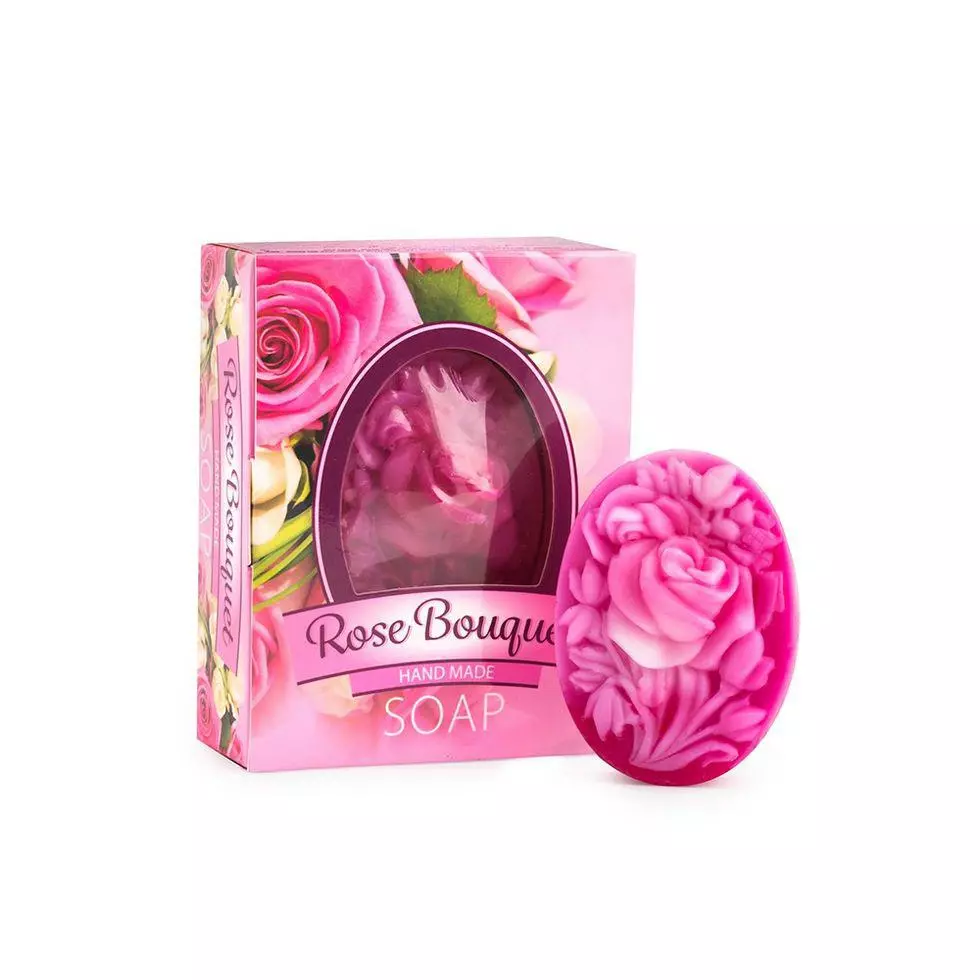 Мыло сделано в форме прекрасного букета роз, напоминая о том,