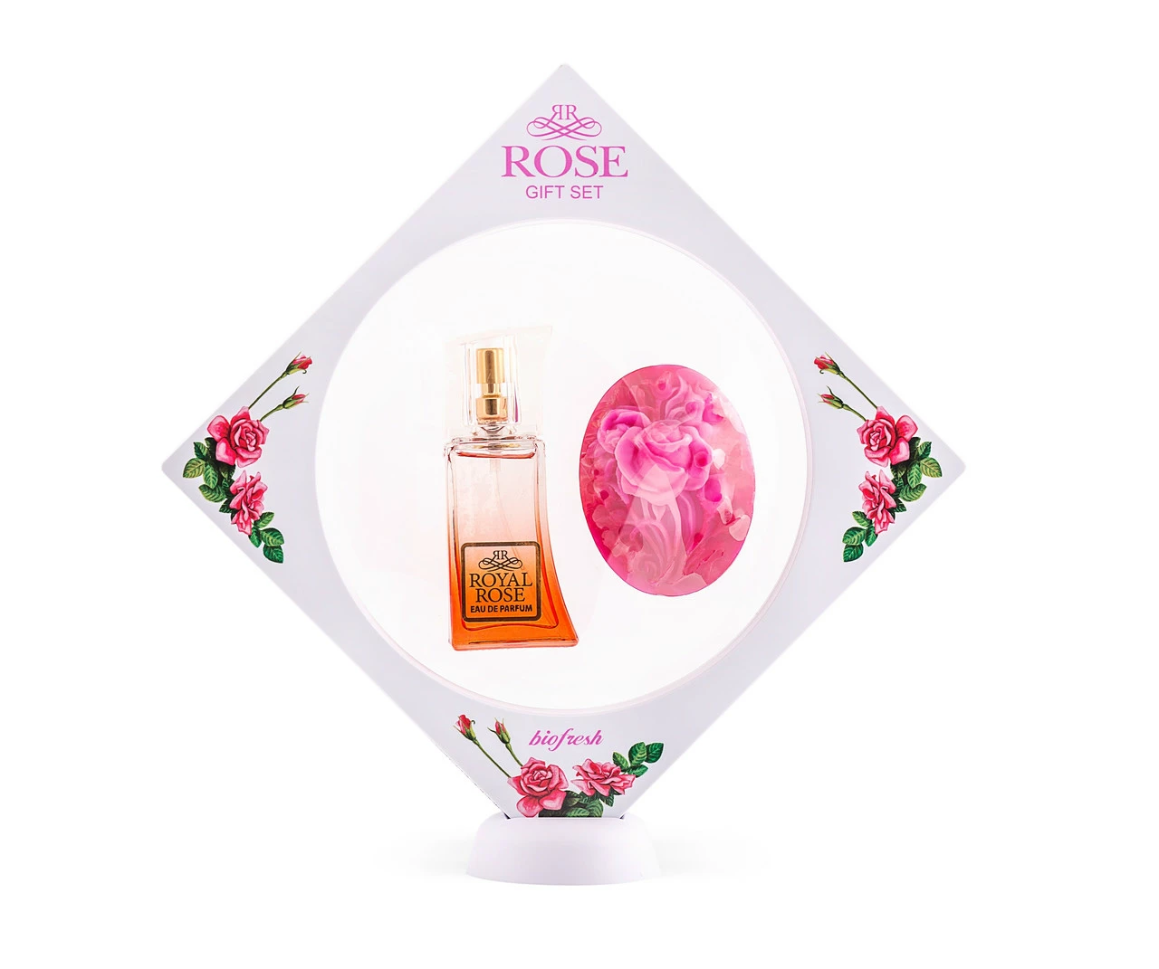 В набор входят: BioFresh Royal Rose - духи, 15 мл + Глицериновое мыло - BioFresh Rose Boquet, 50 г